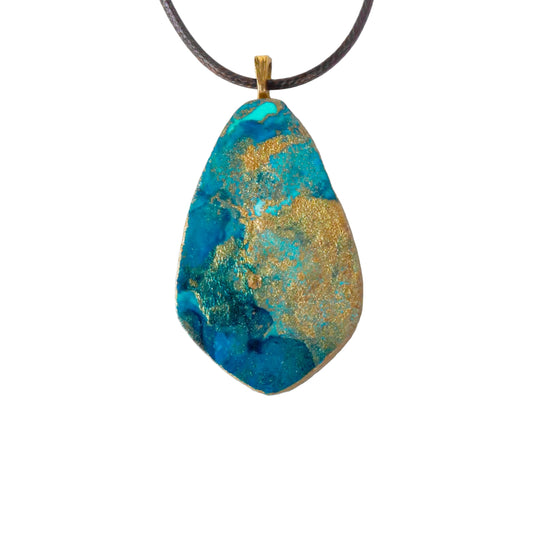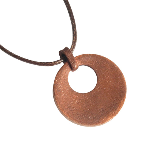 Collar con un medallón de 35mm con un acabado cobrizo y una pátina azul