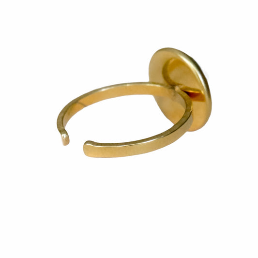 Anillo con cabujón de resina efecto ojos de gato y base de acero inoxidable